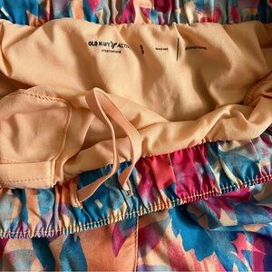 Old Navy Active, quick dry shorts, lined athletic shorts, running shorts, StretchTech, workout wear, abstract print, colorful shorts, peach and blue, gym shorts, sporty, fitness, summer activewear, moisture wicking, lightweight
