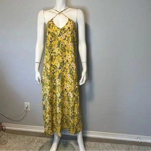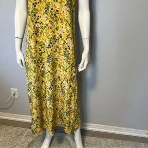 Old Navy Bright yellow floral print maxi dress sleeveless size medium