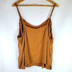 Cooling soft touch rayon fabric and cute ruffle trim edge. Flattering fit. Elevate your wardrobe with this stylish tan sleeveless top. Perfect for any occasion, this top offers both comfort and elegance.
