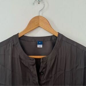 Old Navy Stone Grey Dolman Sleeve Mandarin Neckline Satin Blouse Shirt