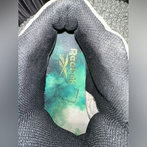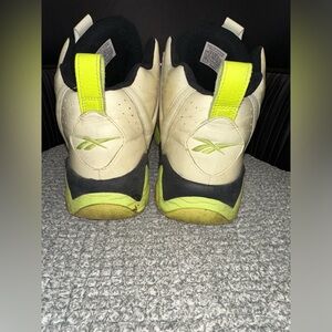 For sale is a pair of older Reebok sneakers. These have been well worn and show signs throughout of its wear. Discolouration and some cracks. Size is a men’s 9.5.