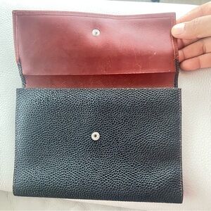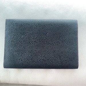 Oleg Cassini Black Cognac Pebbled Leather Trifold Wallet Women Men Fiocchi Italy