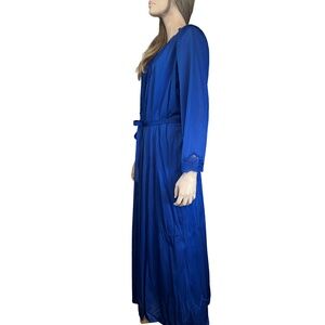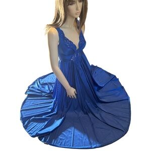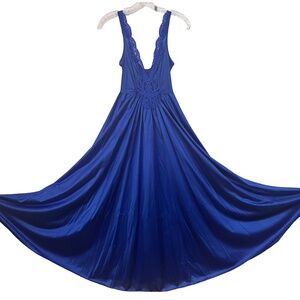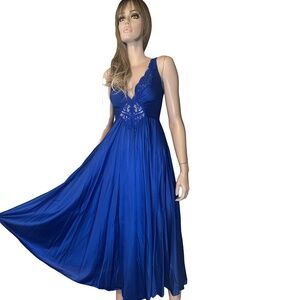Olga Cobalt Blue Lingerie Set Negligee Full Sweep Nightgown Robe Lace Vtg 80s