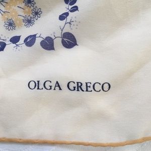 Olga Greco Square Scarf Beige Blue Floral Hand Rol