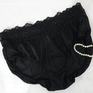 Olga Christina Secret Hug panties, in a pretty jet black nylon. Size 6 Medium, style number 63913 (virtually the same as Olga 23913). Classic Olga backseam. Pristine vintage condition; appears to be NWOT. Luxurious and so pretty!