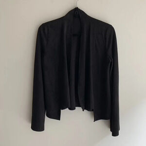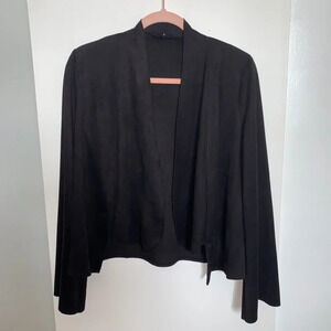 Olivaceous Suede Blazer Open Front Wide Flare Sleeves Black Size Small
