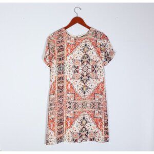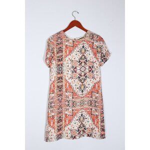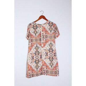 Olivaceous Women Medium Beige Orange Paisley Shirt Dress S/S Crepe Graphic Mini
