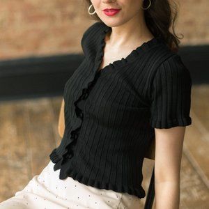 Olive Clothing, Frill Mini Cardigan in Black