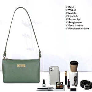 Olive Genuine Leather Crossover Shoulder Bag for Women – Crossbody Sling Bag