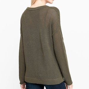 Olive Green 100% Cotton Cable-Knit Open-Stitch High Quality Tunic Sweater