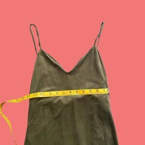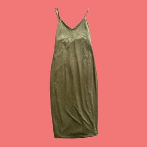 Turn heads in this chic olive green midi slip dress by Gilbert. Featuring a flattering V-neckline and adjustable spaghetti straps, this body-hugging silhouette is perfect for date nights, summer weddings, or cocktail parties. The stretch-suede texture adds a luxe feel with effortless comfort.