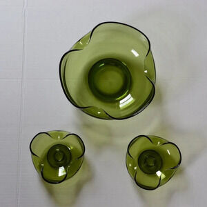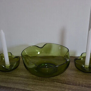 Olive Green Console Bowl with Matching Candle Holders