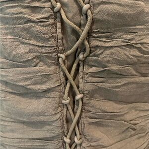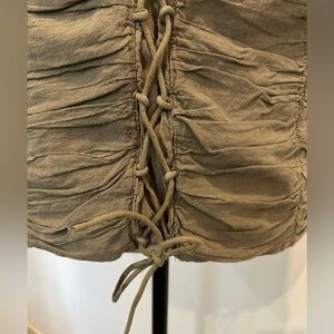 Olive Green Cotton Short Sleeve Top L Corset ruffle Type EUC
