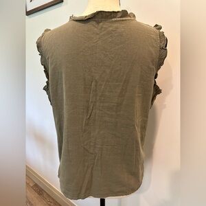 Olive Green Cotton Short Sleeve Top L Corset Type ruffle