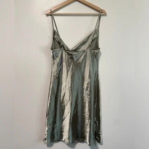 Olive Green Cowl Neck Satin Cami Slip Dress - L