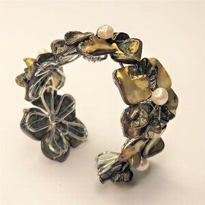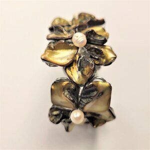 Genuine Pearls and Shell Petals on this floral motif Bangle
