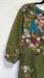 • Olive green base with vintage-style allover floral print in pink, burgundy, teal, and white