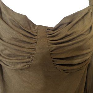 Olive Green Long Sleeve Shirt with Sweetheart Neckline Size 1XL