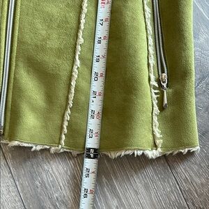 Stay warm and stylish with this olive green shearling jacket. Perfect for any occasion, this jacket combines comfort with a chic design.