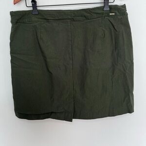 Stylish olive green skort featuring convenient pockets. Perfect for casual outings. Size 16 EUC