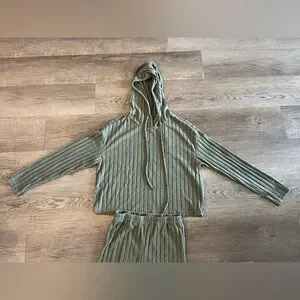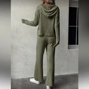 Elevate your style with this chic olive ribbed knit set. Perfect for any occasion, it offers comfort and elegance in one.