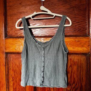 Olive green American Eagle tank top with little buttons and ruffled detailing.