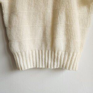 Chic and cozy, this vintage open-front sleeveless vest features a boxy, relaxed silhouette in a delicate cream color. Lightweight knit texture that layers perfectly over a blouse, shirt, bodysuit, dress, or any top.