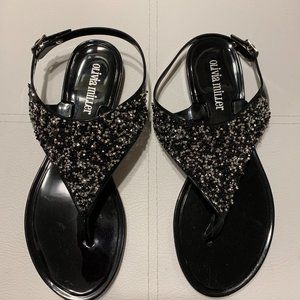 Olivia Miller AlessanoJelly Sandals, Black, Silver, Size 7