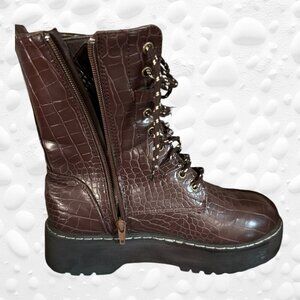 Olivia Miller Ladies Brown Reptile Combat Style Platform Boots Size 8 NWT