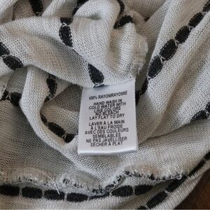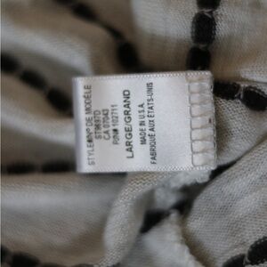 Olivia Moon cream and dark grey striped loose fitting t shirt. Preloved. Would look great with a pair of shorts tucked in on a pair of jeans. Would be nice worn over top of a tank top or bathing suit as well. It is see through as shown in picture.