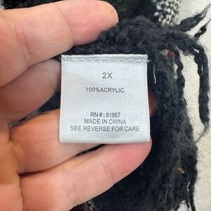 Olivia Sky Poncho Womens Size 2X Turtleneck Black Striped Cabincore Comfy Soft