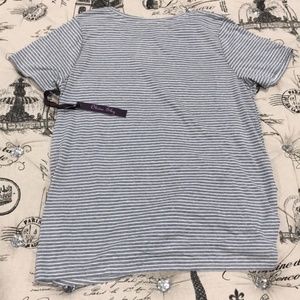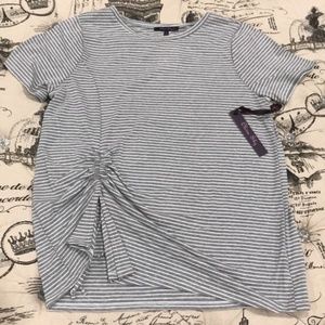 An adjustable ruched front adds a unique look to this striped basic tee.