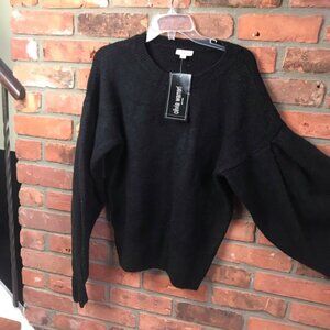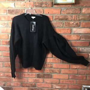 Olivia Warren NEW Balloon Sleeve Boxy Black Sweater Crew Puffy Crop Stretch,