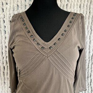 Olsen Brown Embellished V-Neck Blouse – Size Medium