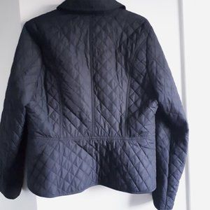 Black lightweight quilted button down jacket with pockets