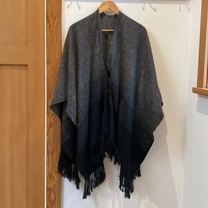 Very gently previously worn. It is so soft and warm. If it didn’t rain so much here in Vancouver I would keep this for myself because I love the subtle knit pattern. One size fits all. She used to wear it belted.