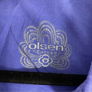 Olsen Europe Shirt / Top. Women's tag size Large. 100% Linen. Purple. Short sleeve button up with V-neck. Cuffed, tab sleeves. Chest pockets. Split hem.