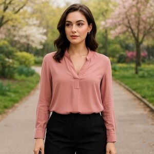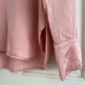 Pink Satin V-Neck Olsen Europe Long Sleeve Blouse 6