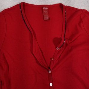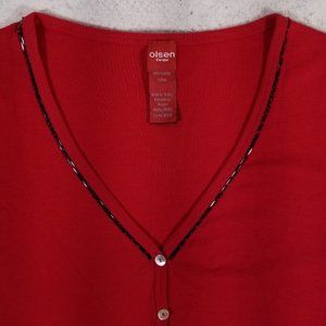 Olsen Europe Red Button Up V-Neck Sweatshirt
