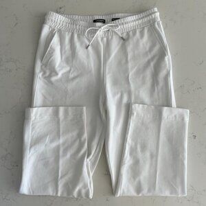 Olsen Mona Straight Elasticized Waist w Drawcord Pull On Cotton Blend Ankle/Crop Pants with Side Panel in White NWOT