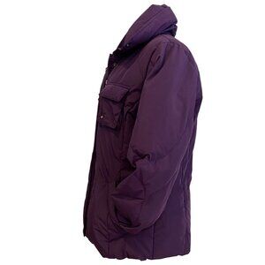 Item keywords: women's jacket, winter outerwear, purple down and feather puffer coat, detachable hood jacket, quilted feathers and down jacket, medium 6 size jacket, women's fashion, winter coat, functional jacket, stylish outerwear, cold weather jacket, front pocket coat, vibrant winter wear, feminine, classic & timeless