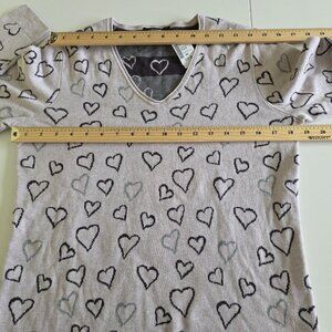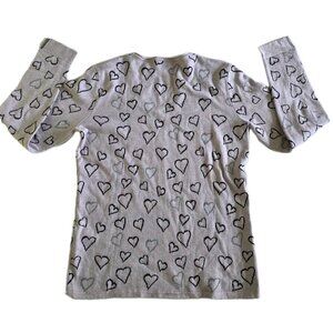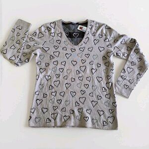 Olsen Sweater Womens US 8 Lavender Heart Shapes AOP LS V Neck Cotton Boho Casual