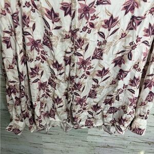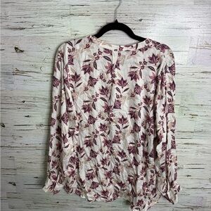 Chic Calvin Klein blouse with floral pattern. Cream base with purple accents. Perfect for versatile styling.
