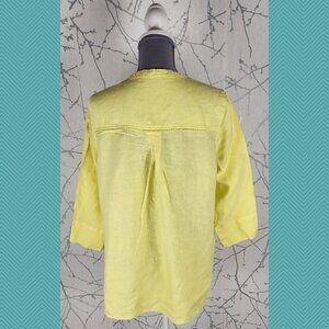 Olsen Yellow 100% Linen Tunic Top 3/4 Length Sleeves Sustainable