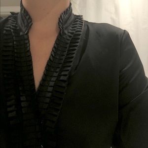Black Satin line blouse with awesome collar detail. long sleeve.