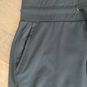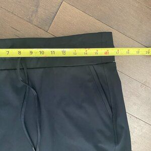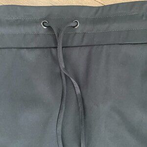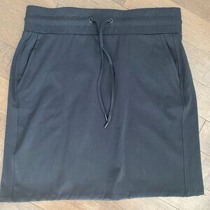 Excellent conditon like new black sport skirt by Olsen. You can feel the quality in this sporty pull on skirt with front tie and two front pockets. Waist is elastic. 16.5 - 17" with stretch. length is 20". This skirt wouid be fantastic to run errands, casual outings or business casual. Back pockets are only for show.