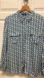 Olsen button up blouse, long sleeve, white & blue circle pattern, XL