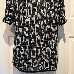 Olsen Europe Black/White Patterned Cardigan Size M (10) Nwot