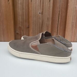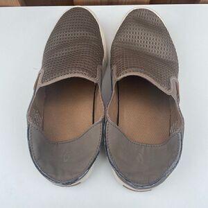 OluKai Pehuea Leather Shoes Size 8 Grey Slip On Casual Shoes Loafers