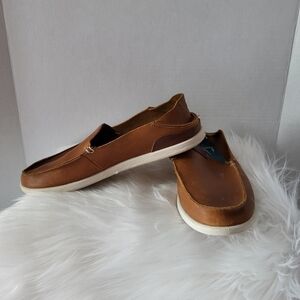 Olukai Men's Tan Leather Slip-Ons, Size 8.5